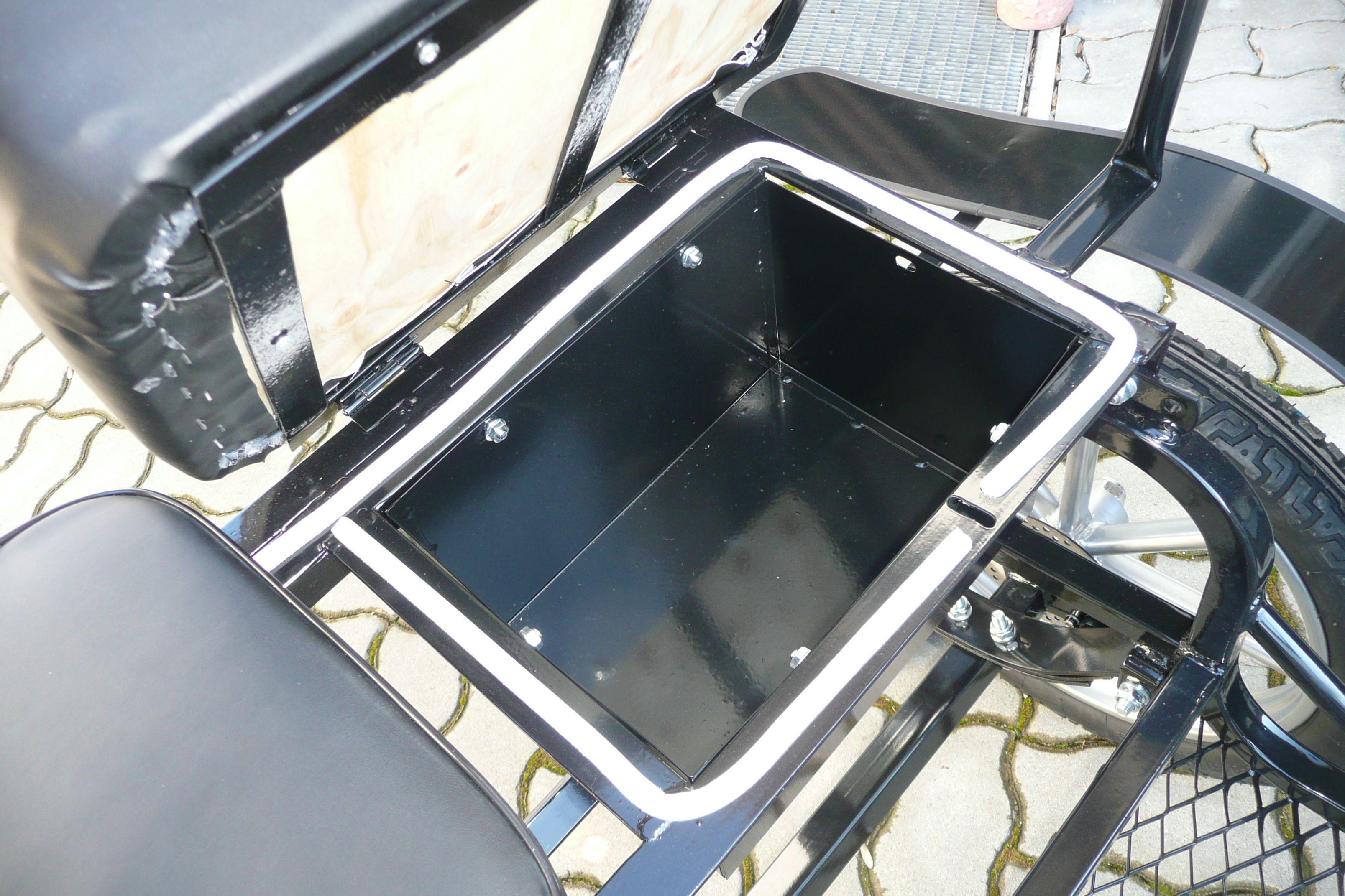 praktische, abschließbare Stauraumkiste unter dem Beifahrersitz